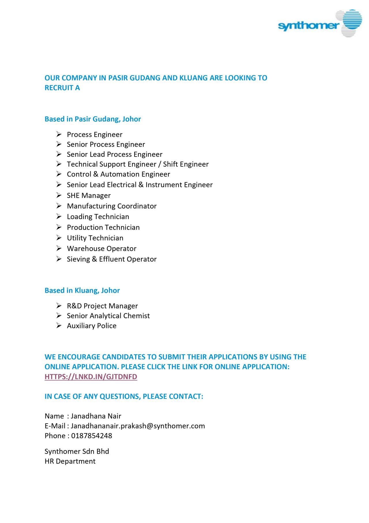 Getme Hired On Twitter Vacancy At Synthomer M Sdn Bhd Process Engineer Control Amp Automation Engineer Technical Support Shift Engineer Others Interested To View Complete Job Descriptions Please